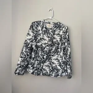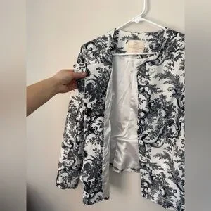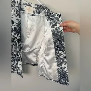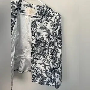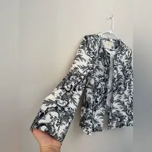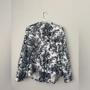 By Coco Rocha for Disney Modern Princess. Asymmetrical front with concealed snap placket. Two front pockets. Long sleeves. Lined. Back vent. Shoulder pads. Longer in front