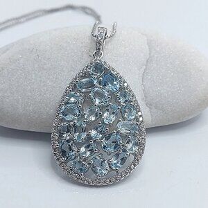 Beautiful Natural Sky Blue Topaz Gemstone 925 Sterling Silver Necklace