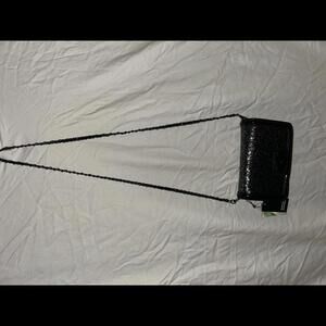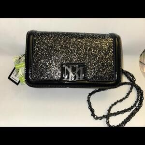 Badgley Mischka Black Glitter Clutch Crossbody with Chain BNWT
