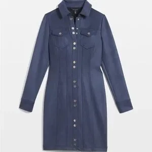 White House Black Market (WHBM) Long Sleeve Faux Suede Shacket Dress