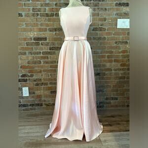 Vintage 50s Scott McClintock belted blush pink maxi dress gown elegant size 6
