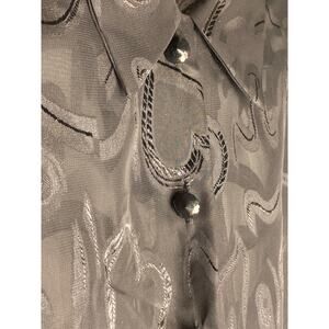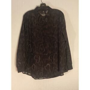 Vintage Heart Print Expose Sheer Blouse 90s Y2K Black Squiggle ~ Sz M