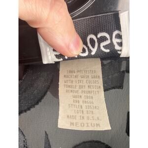 This vintage 90s/Y2K sheer blouse is a playful yet chic statement piece, featuring a black squiggle heart print in a semi-sheer fabric. The sheer design adds an alluring touch, while the relaxed fit makes it effortlessly stylish. Designed with a button-down front, pointed collar, and long sleeves, this blouse offers versatility. A true throwback to the late 90s and early 2000s, this piece is perfect for adding a touch of nostalgia to any wardrobe.