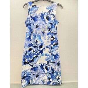 CHAPS Womens Midi Dress Sleeveless Watercolor Floral Blue 6