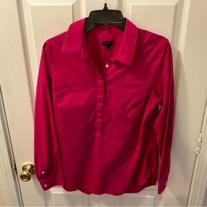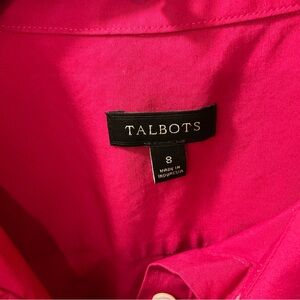 This vibrant pink button down shirt from Talbots features a notched collar and cuffed sleeves, making it a stylish choice for any occasion. Its sleek design and eye-catching color ensure you stand out with elegance and confidence. (BINWTOP)