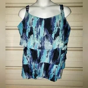 Plus Size 28 4x Womens Blue Tankini Ruffle Swimsuit Top Swim Avenue
