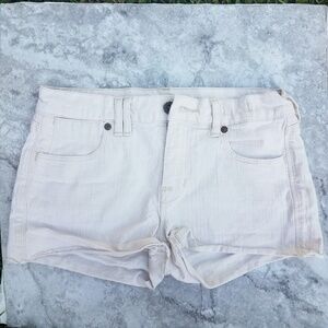 Features: white denim shorts, Madewell shorts, raw hem shorts, mid rise shorts, beach shorts