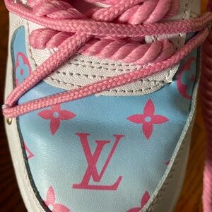 Nike Custom White and Pink Sneakers With Rope Laces