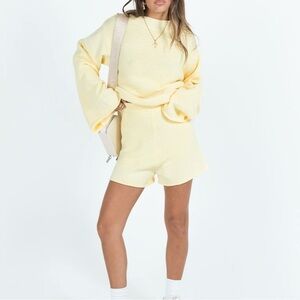 Brand new with tags! Princess Polly stylish knit sweater and shorts set in a soft yellow color. Perfect for spring/summer!