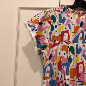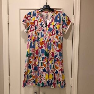 (NWT) THML Tiered Short Sleeve V Dress with Fringe and Ruffle Trim
