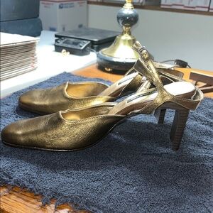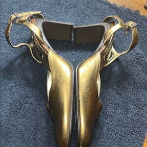 DKNY Gold Slingback Heels with Rounded Toe