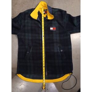 Vtg 90s Tommy Hilfiger Check Fleece Jacket Men's Size S Full Zip Plaid Green