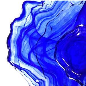Abstract Blown Art Glass MCM Oyster Design Cobalt Ice Blue Clear Serving Bowl!