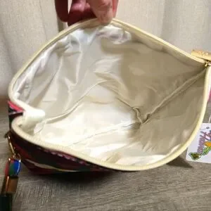 Brand new with tags from Island Sense, Hawaii. Multicolor, detachable wristlet. Top zip closure, spacious white interior.