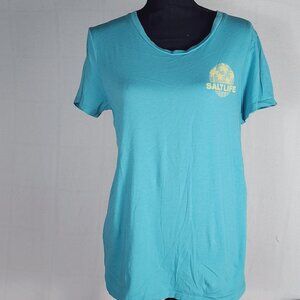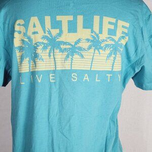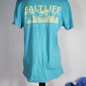 Salt Life Live Salty Pastel Green and Yellow Cotton Cap Sleeve Palm Promenade T-Shirt Size M....Beautiful Combination of Colors...Very Bright and cheery You Can Feel the Warmth of the Palm Trees Swaying.....Like Brand New.....