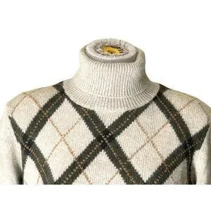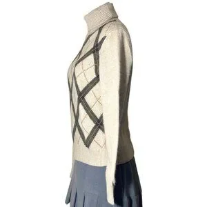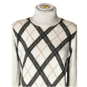 Vintage Evan Picone Tan & Brown Angora Blend Argyle Turtleneck Sweater Top Sz M