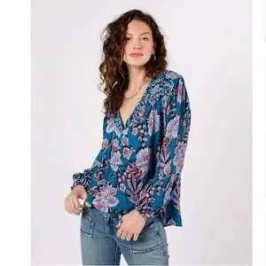 JOSIE SAPPHIRE MIXED PRINT LONG SLEEVE TOP
