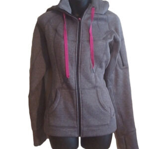 Beautiful lined Athleta grey hoodie Fitted, sleeker design. Thicker style, nice and warm for all the layering!Great used condition, no flaws .Size medium.
