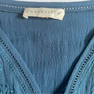 Lovestitch Teal Blue Embroidered Kimono Crop Top US L
