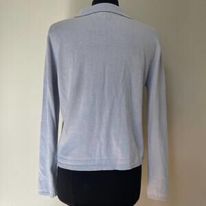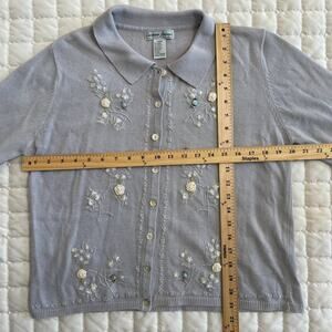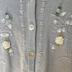 Vintage Stephanie Andrews Blue White Embroidered Flower Cardigan Button Down Long Sleeve Floral Cottagecore Size Large