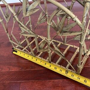 Palm Beach Regency metal faux bamboo leaf magazine holder. Sage green patina.