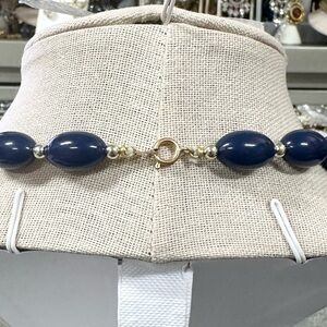 Vintage Navy Blue Enamel And Beaded Gold Tone Statement Necklace