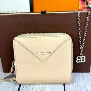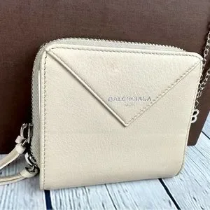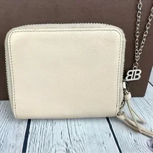 Balenciaga Beige Leather bifold compact zippy wallet with necklace GREAT!
