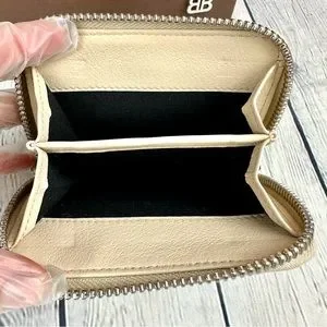 BALENCIAGA cream leather bifold compact ZIPPY wallet in very good condition!