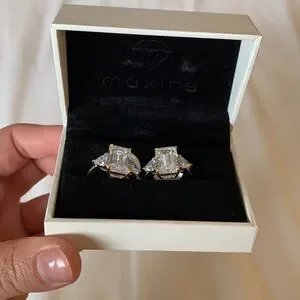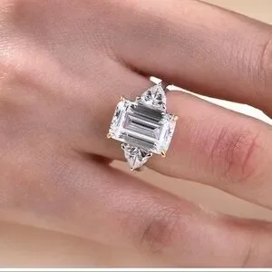 Brand new, extremely brilliant huge center stone and two smaller triangle stones on the side, 2 available both size 6