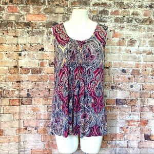 Croft & Barrow Shirt Sleeveless Bohemian Style Damask Sz Medium