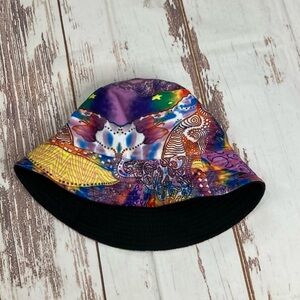 Psychedelic Bucket Hat Hippie Tie Dye Good Vibes Reversible Sz OSFM