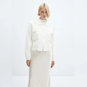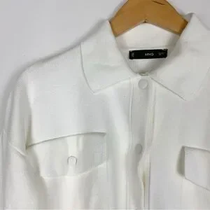 Mango Long Sleeve Cardigan With Shirt Collar And Pockets In Color Off White