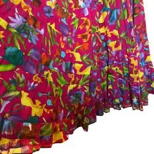 Silver Stream Vintage Tiered Floral Maxi Skirt Tropical Print Maximalist Pink One Size