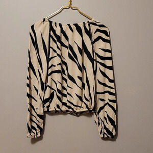 CREAM AND BLACK WOMENS XS LONG SLEEVE BLOUSE