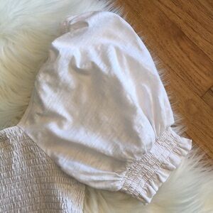 Boden brand white smocked crop top with puff sleeves - can be worn off the shoulder, or on.