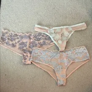 PINK Victoria's Secret Cream and Tan Lace Panties Intimates NWOT