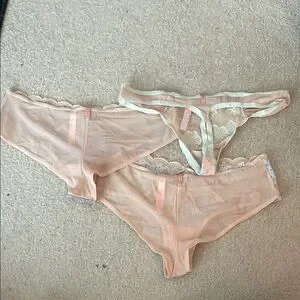 Experience the perfect blend of comfort and elegance with these cream and tan panties from PINK Victoria's Secret. Crafted with delicate lace and lightweight materials, these intimates offer a stylish and comfortable fit. Ideal for adding a touch of sophistication to your sleepwear collection.
