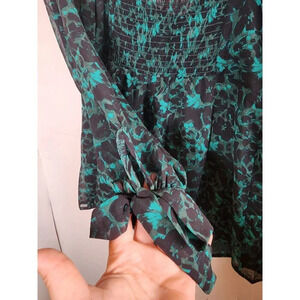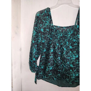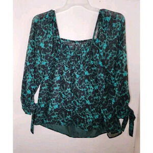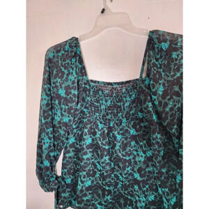 New Isabel Maternity Women's Floral Black & Green V-Neck Square-Back Blouse S