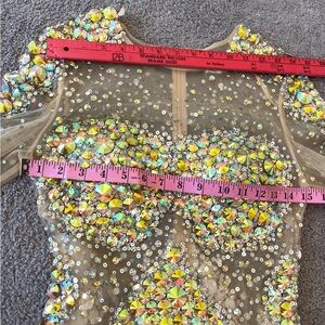 JOVANI 8 long sleeve shirt cocktail dress sheer mesh Crystal sequin NYE dress