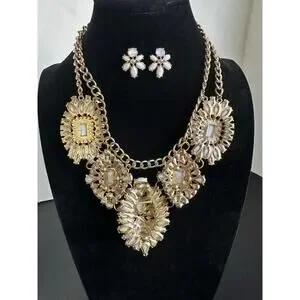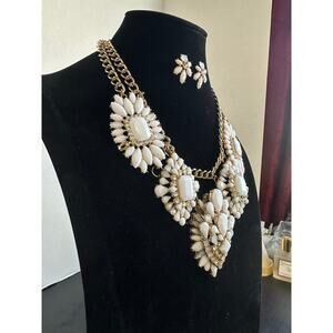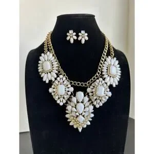 Stunning White Statement Necklace and Earring Set - Rhinestone & Acrylic Design