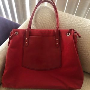 Vintage Kenneth Cole Red Leather & Canvas Large TOTE BAG