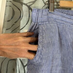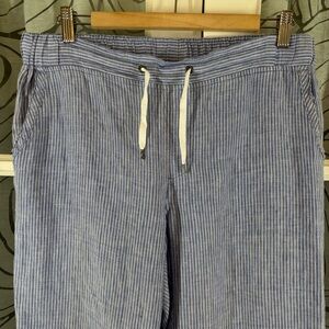 LL Bean Favorite Fit 12 Blue White Stripe Linen Lagenlook Elas Waistband Pants
