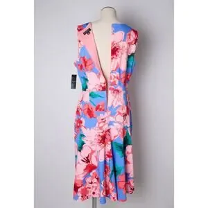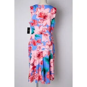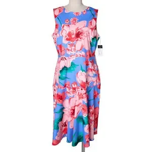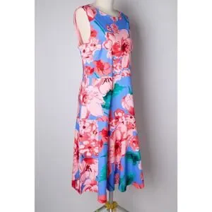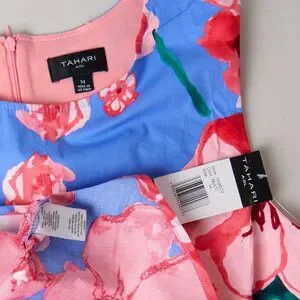 Tahari ASL Floral Midi Dress 14 A-Line Baby Shower Wedding Guest Vacation Resort