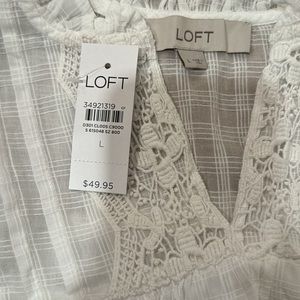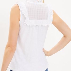 New with tags Sold Out Loft Pom Pom Ruffle Shell Shirt in Large. This is perfect for summer and looks great alone or would pair perfectly with a jacket and skirt.