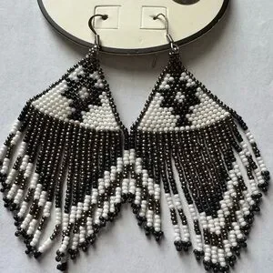 Beaded tri-color Silver drop earring