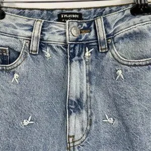 Playboy x Pacsun Raining Bunnies Sz 27 90’s Boyfriend Drop Hem Jeans 100% Cotton