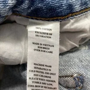 Features: high rise, straight leg, raw hem, pockets in front and back