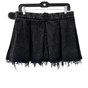 Darker Wavs Dolls Kill dollskill bassline distressed mini skirt micro mini XL black acid wash distressed frayed grommet pleated new with tags nwt goth gothic whimsigoth emo grunge punk