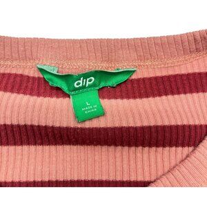 Pink Striped T Shirt Womens Size Large Cap Short Sleeve Dip Fitted Tee