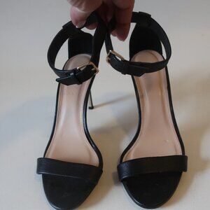 J. Crew Black Leather Heel Sandals With Ankle Strap Sz 6 *